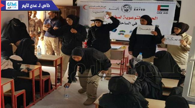 وحصلت" عدن تايم" على تسجيل مرئي لمدربات اماراتي يشاركن في توعية نساء وأطفال منطقة الكدحه بالمخا، بمخاطر الالغام، بمشاركة واسعة من قبل أهالي المنطقة.