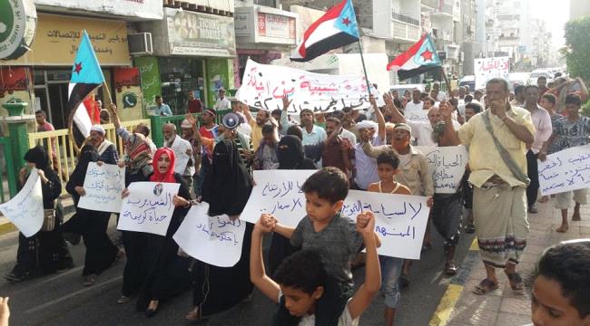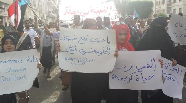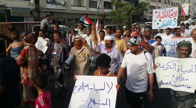 كما ندد المحتجون بصمت التحالف العربي وتجاهل مطالبهم ، في الوقت الذي يفترض أن يبادر التحالف الذي يمسك بملف اليمن بالتدخل الفوري لإنقاذ الشعب الذي بات على حافة المجاعة في ظل أوضاع سياسية مضطربة وعدم وجود إستقرار معيشي للمواطنين .