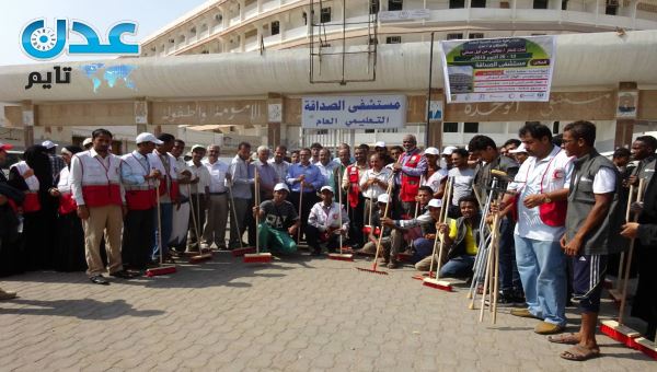 عشرات النشطاء يدشنون حملة نظافة طوعية لمستشفى الصداقة بعدن