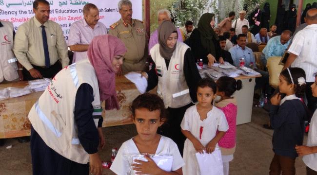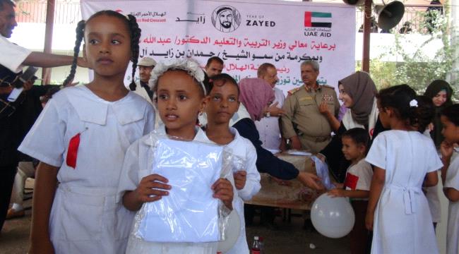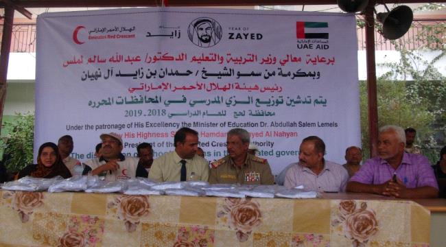 محافظ لحج يدشن توزيع الزي المدرسي المقدم من الهلال الأحمر الإماراتي "صور"