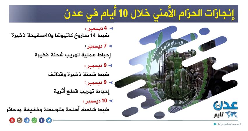 أنفو جرافيك: إنجازات الحزام الأمني خلال 10 أيام في عدن