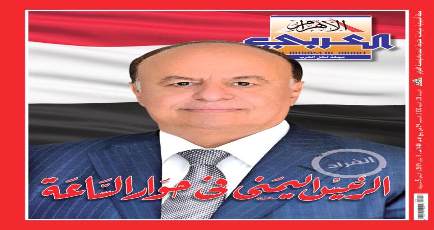 فى أول حوار للرئيس اليمنى عبد ربه منصور هادى لوسيلة إعلام مصرية، تحدث مع مجلة �الأهرام العربى� عن آخر المستجدات فى الساحة اليمنية، بعد مشاورات �استوكهولم�، ومستقبل الحل السياسى على أرض الواقع، فى ضوء الموقف الحالى بمدينة �الحديدة�. وكشف الرئيس هادى عن التحولات التى شهدها اليمن على الصعيد الميدانى والعسكرى، والمناطق المحررة التى تصل إلى 85% من إجمالى مساحة البلد، وكيف استطاع الرئيس اليمنى إعادة بناء مؤسسات الدولة من الصفر، ودور التحالف العربى منذ اللحظة الأولى لانطلاق عاصفة الحزم.