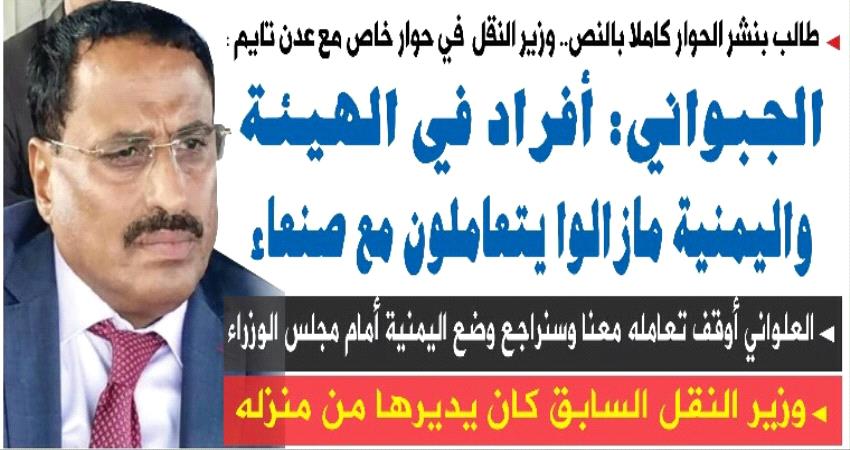 وسنفرد صفحتنا هذه لنشر الجزء الاول من الحوار الذي أجريناه مع الجبواني ، هذا الوزير الذي أثار جدلاً في وسائل الإعلام بتصريحاته الهجومية ضد الإمارات والمجلس الإنتقالي والجنوبيين المطالبين بالإستقلال وإستعادة الدولة ، معتبراً أن تلك المطالب عفى عنها الزمن ولا مستقبل لليمن الا بدولة إتحادية من ستة أقاليم ، وسننشر الحوار كاملاً بالحرف دون زيادة أو نقصان بناءا على طلبه.