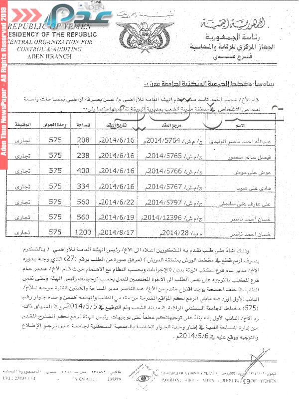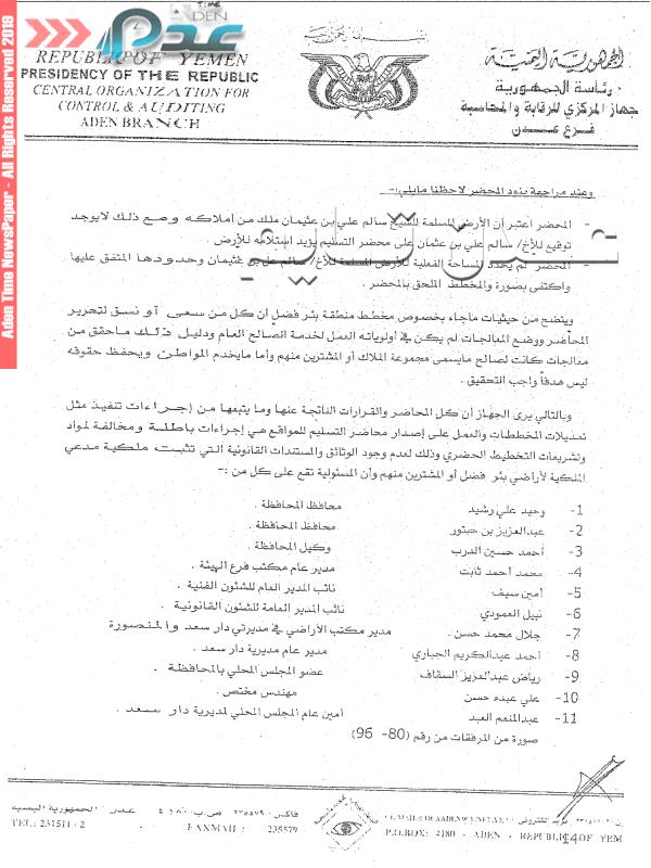 بالوثائق والاسماء- عدن تايم تفتح ملف نهب أراضي عدن