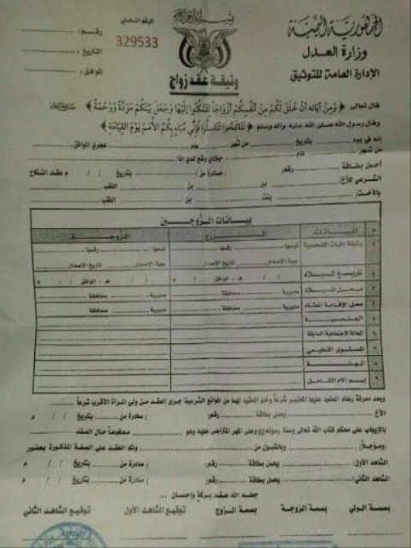 حذر مسؤول دبلوماسي بالسفارة اليمنية بالعاصمة المصرية القاهرة من التعامل مع عقود الزواج الصادرة من وزارة العدل اليمنية او عقود من مصر يحملها البعض والادعاء بصفة مأذون شرعي مما يترتب عليه حقوق والتزامات وابناء واعراض ومواريث وغير ذلك.