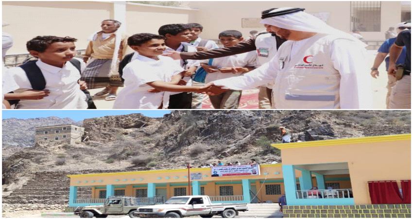 اعطت هيئة الهلال الاحمر الاماراتي في اليمن اهتماما خاصا بالمنشئات التعليمية من بناء واعادة تأهيل للمدارس وتزويدها بالوسائل والمعدات الحديثة .