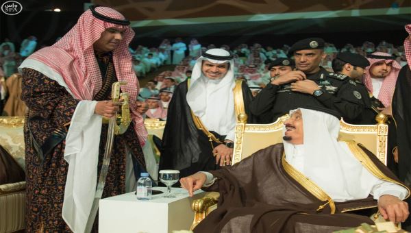 الأمير راكان بن سلمان قدم السيف لوالده ليشارك في العرضة السعودية التي أقيمت في حفل التخريج المصغر، وأبكى الموقف الملك سلمان وهو يشاهد نجله الصغير قد أنهى تعليمه بنجاح.