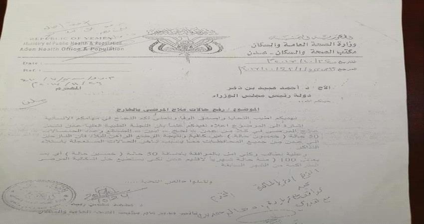 في ظل تزايد الطلب ..50 منحة علاجية في مكتب الصحة بعدن مجدولة الى عام 2020